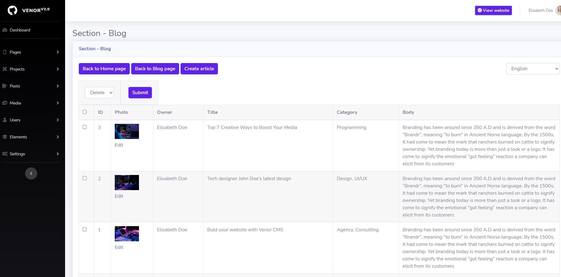 Import the database 'Venor.sql' from the package you have downloaded from Codecanyon.