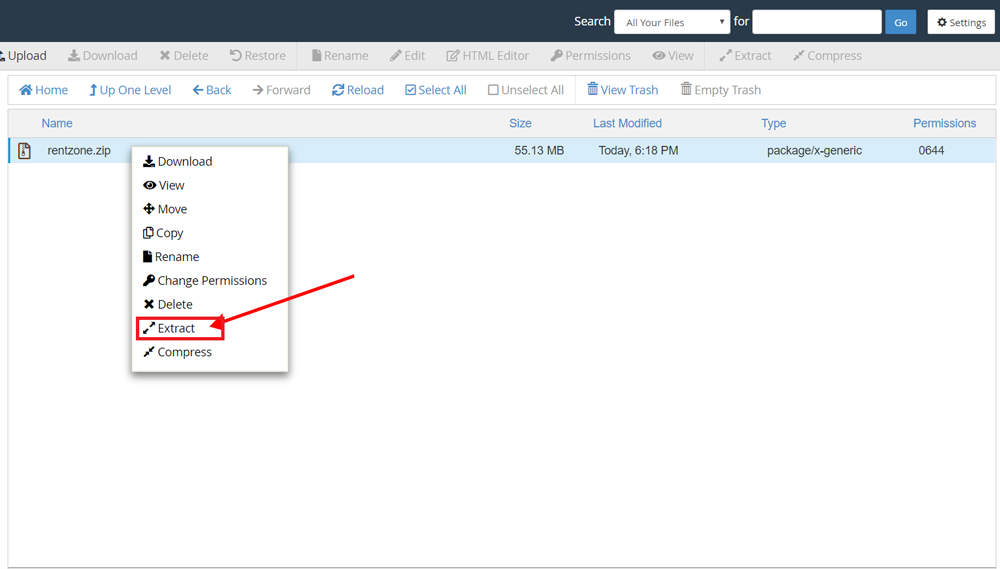 Migrate folders and files from zip file(venor.zip) with Cpanel.